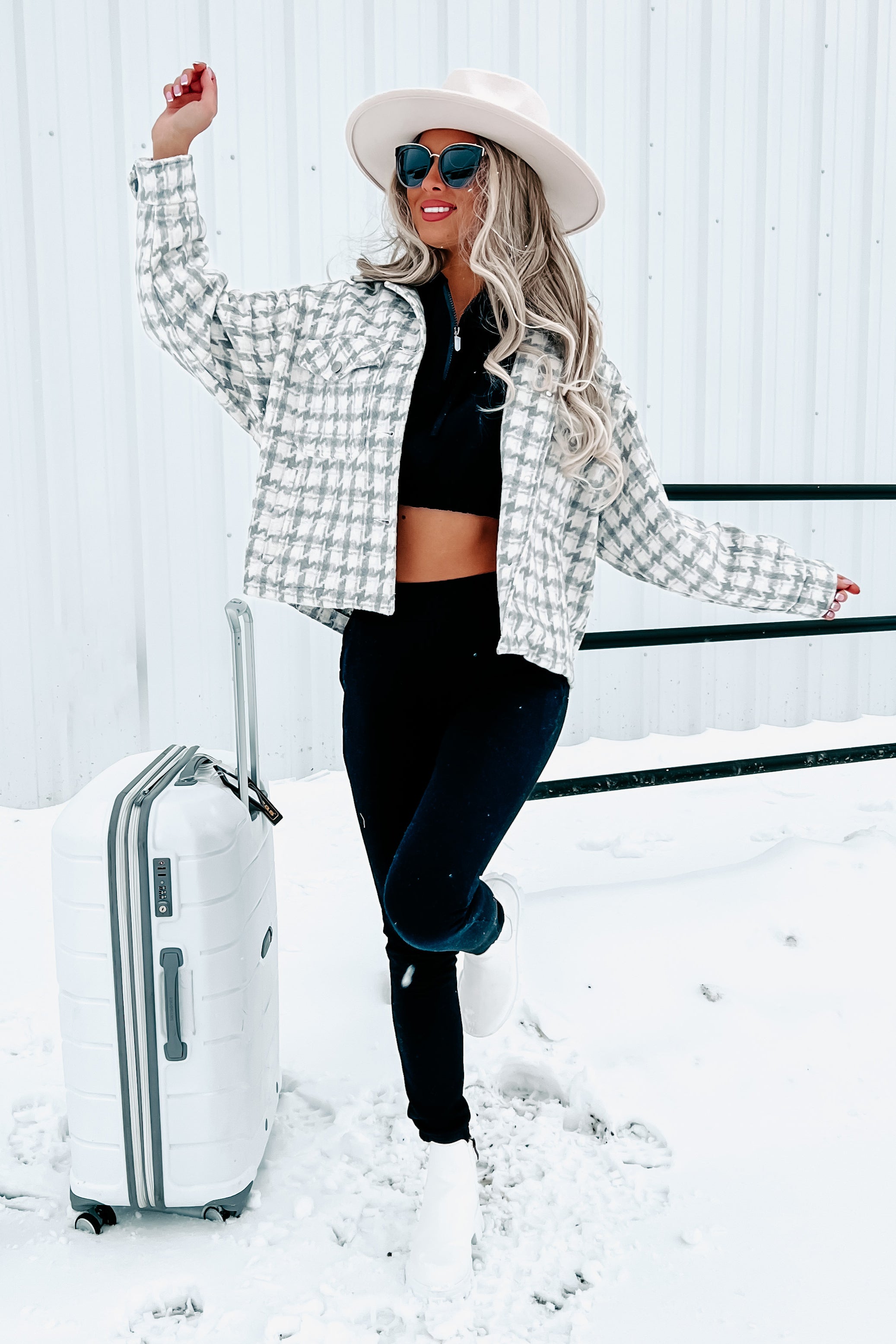 Mix Up Your Shacket Style With This Chic. Houndstooth Print One! It's Classy With A Bit Of A Casual Vibe!