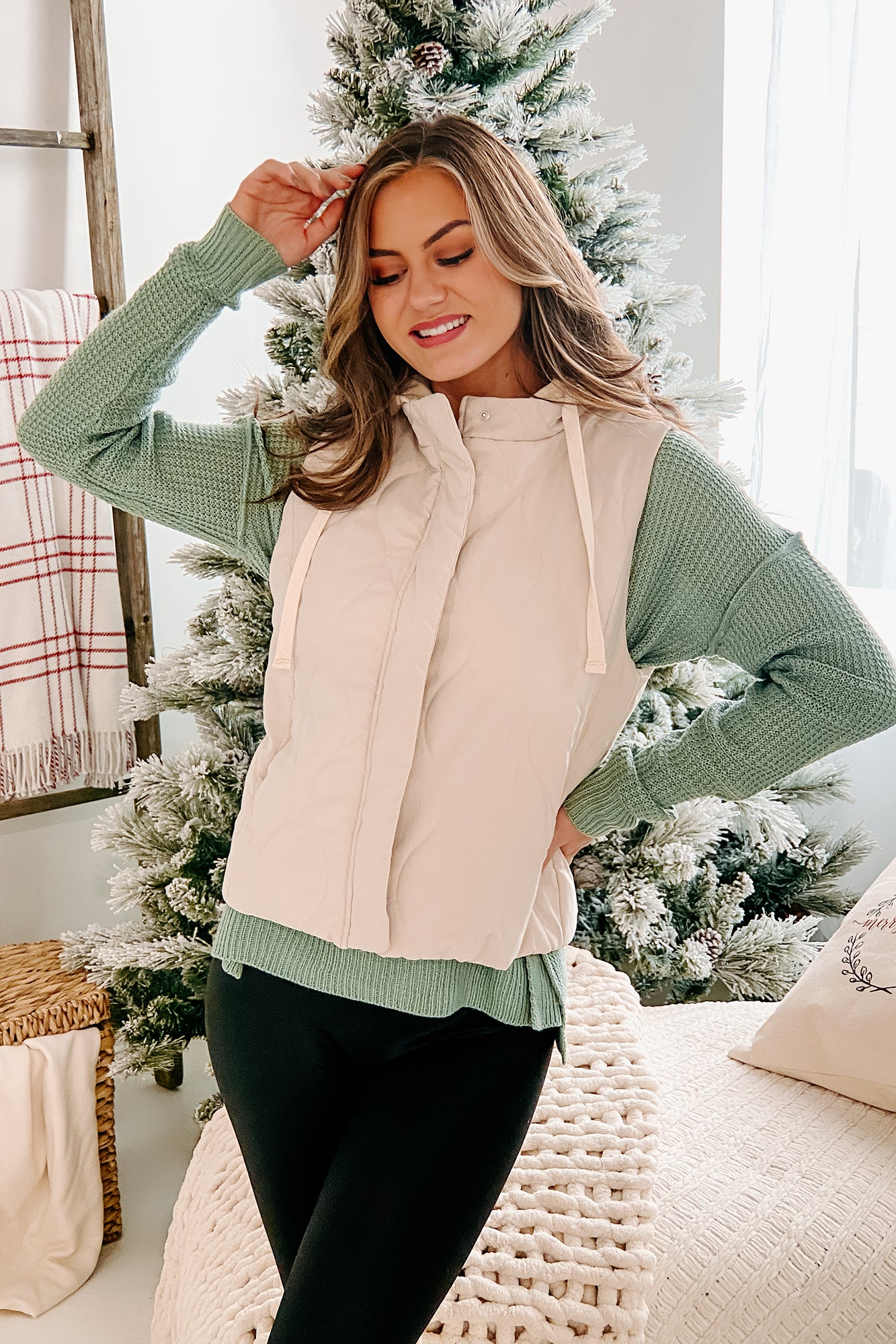 This Ecru. Hooded Puffer Vest Would Look So Cute Styled With A Long Sleeve Top. Leggings. Sneakers & A Ball Cap!