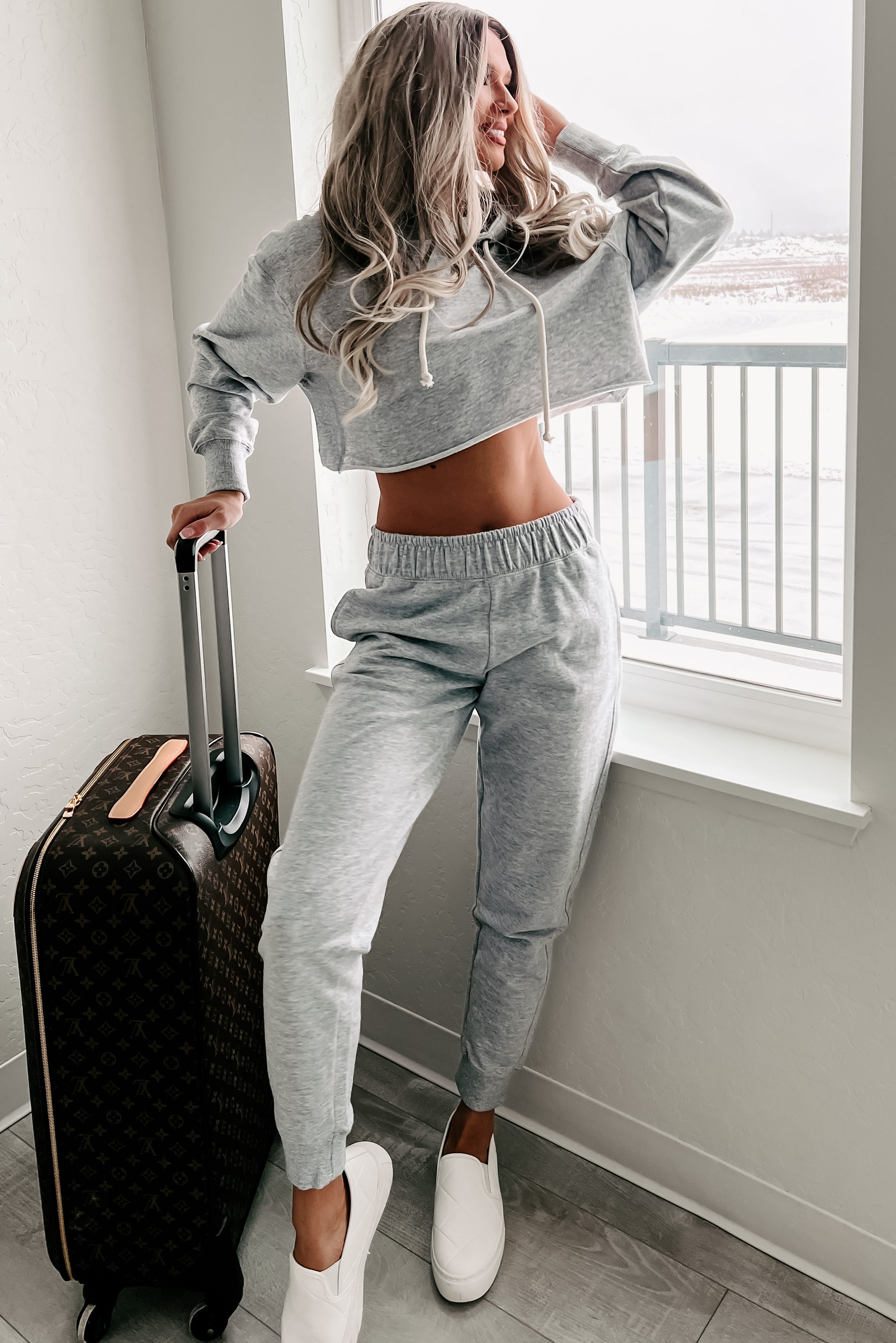 Be Trendy & Cute In This White. Cropped Hoodie & Joggers Set!