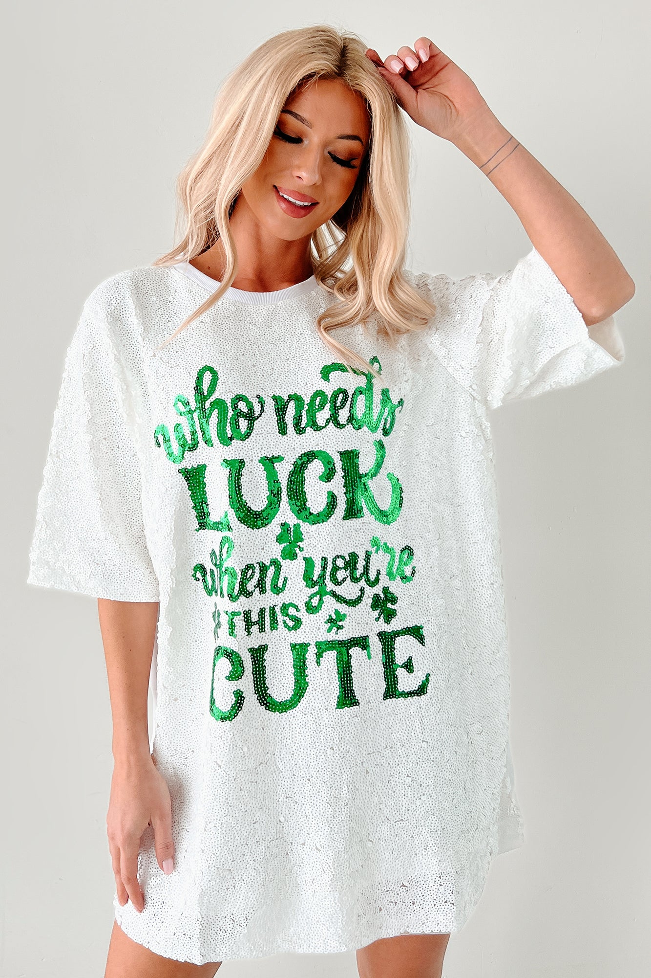 - Front: "Who Needs Luck When You're This Cute" Graphic
