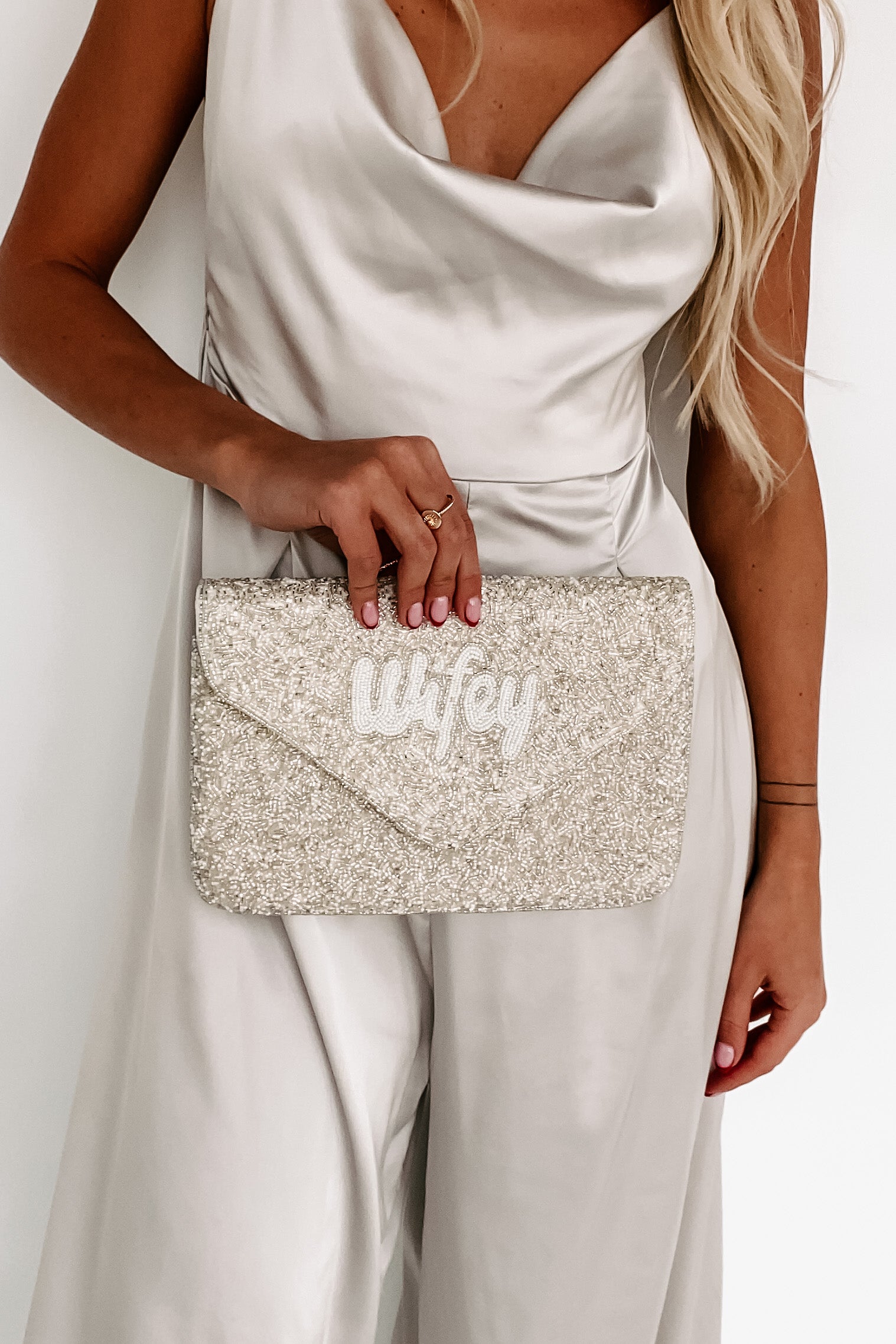Show Off That "Wifey" Status With This Silver & White Beaded Clutch!